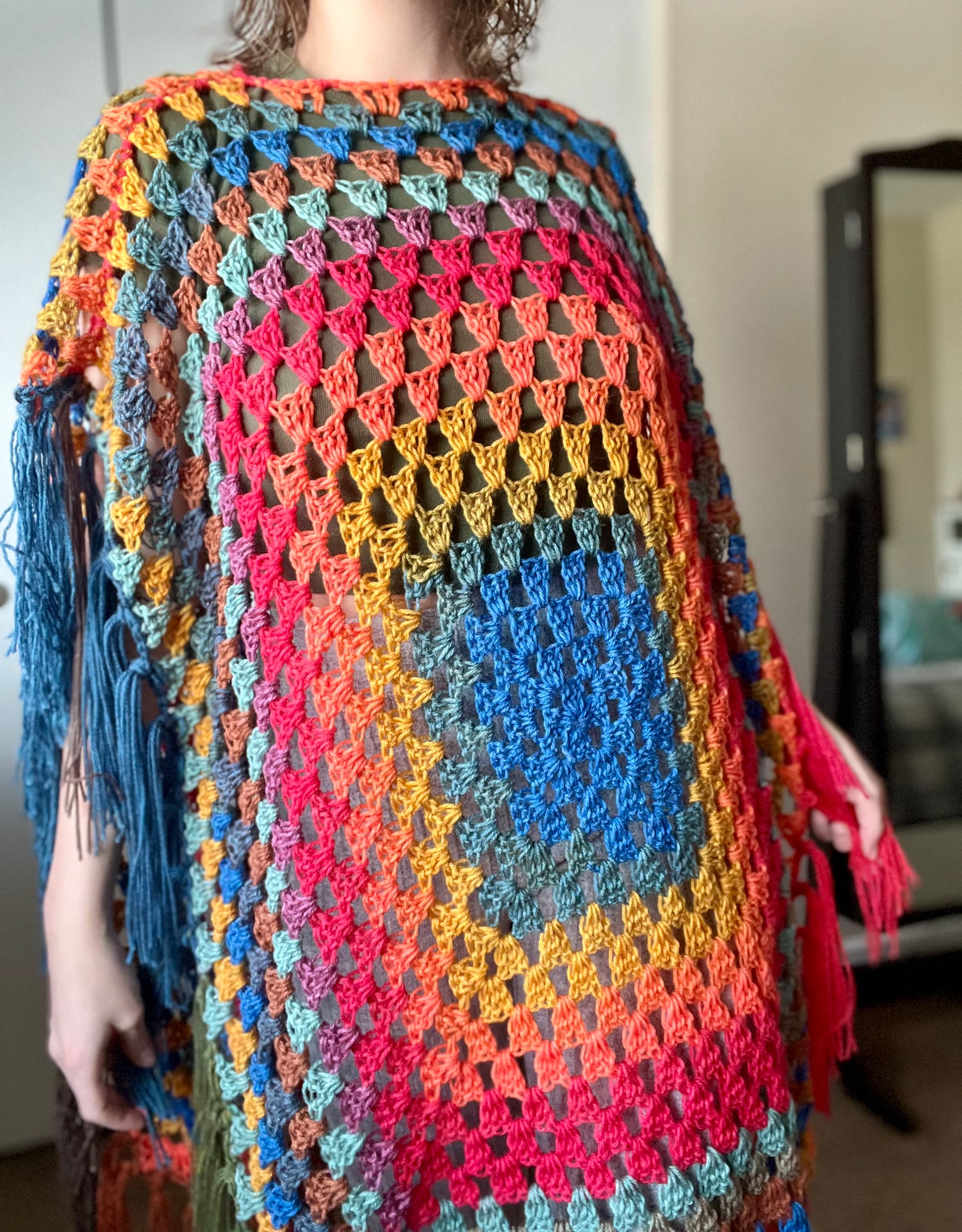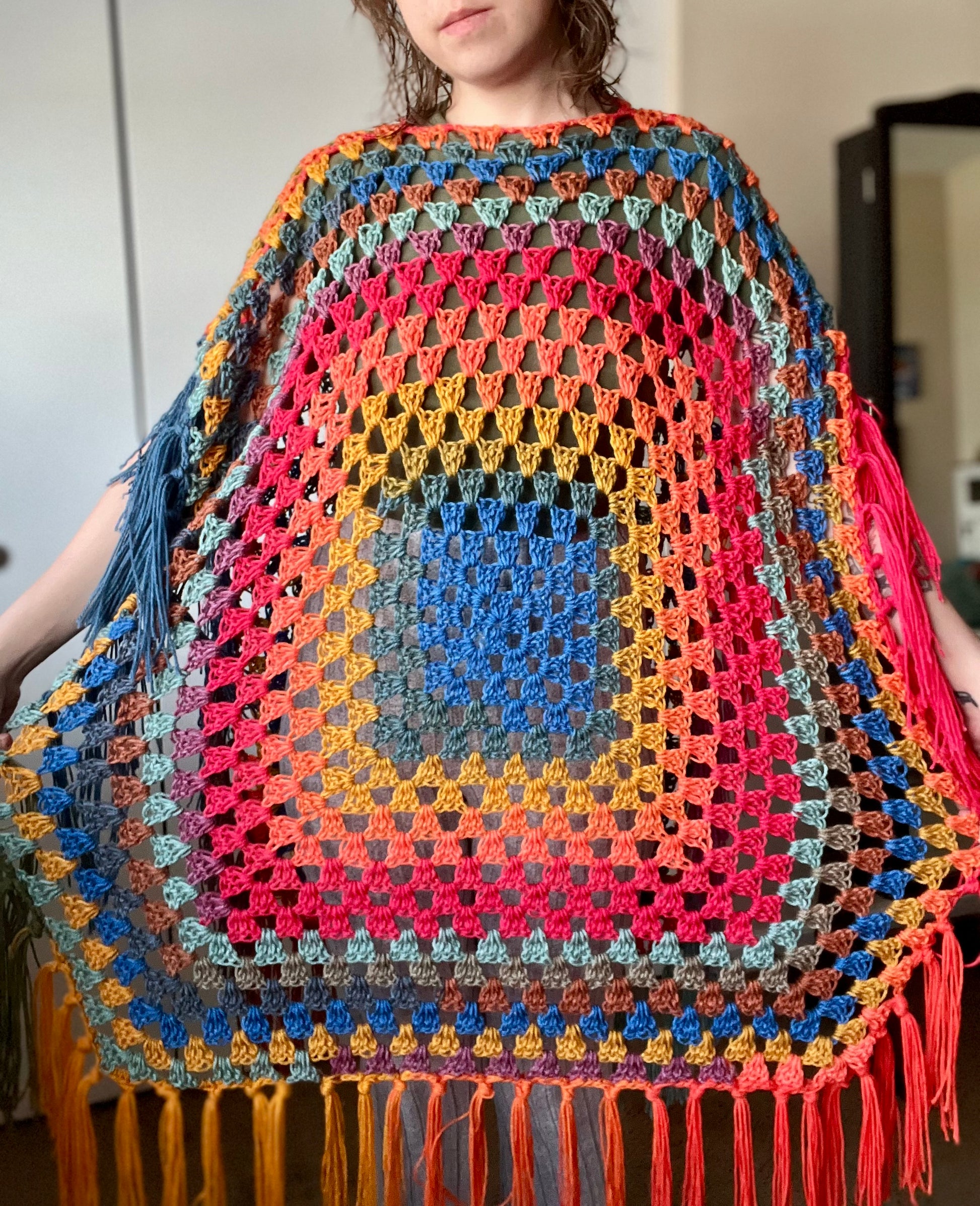 made with discontinued Caron skinny cakes yarn, acrylic, hand dyed