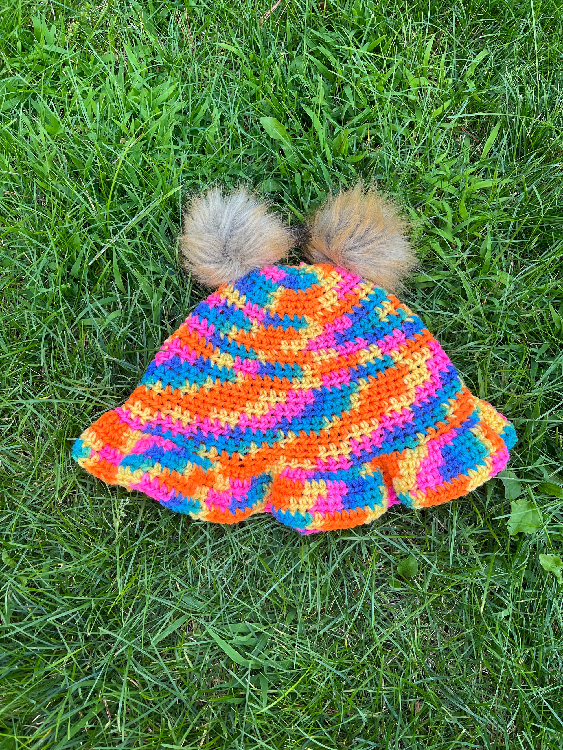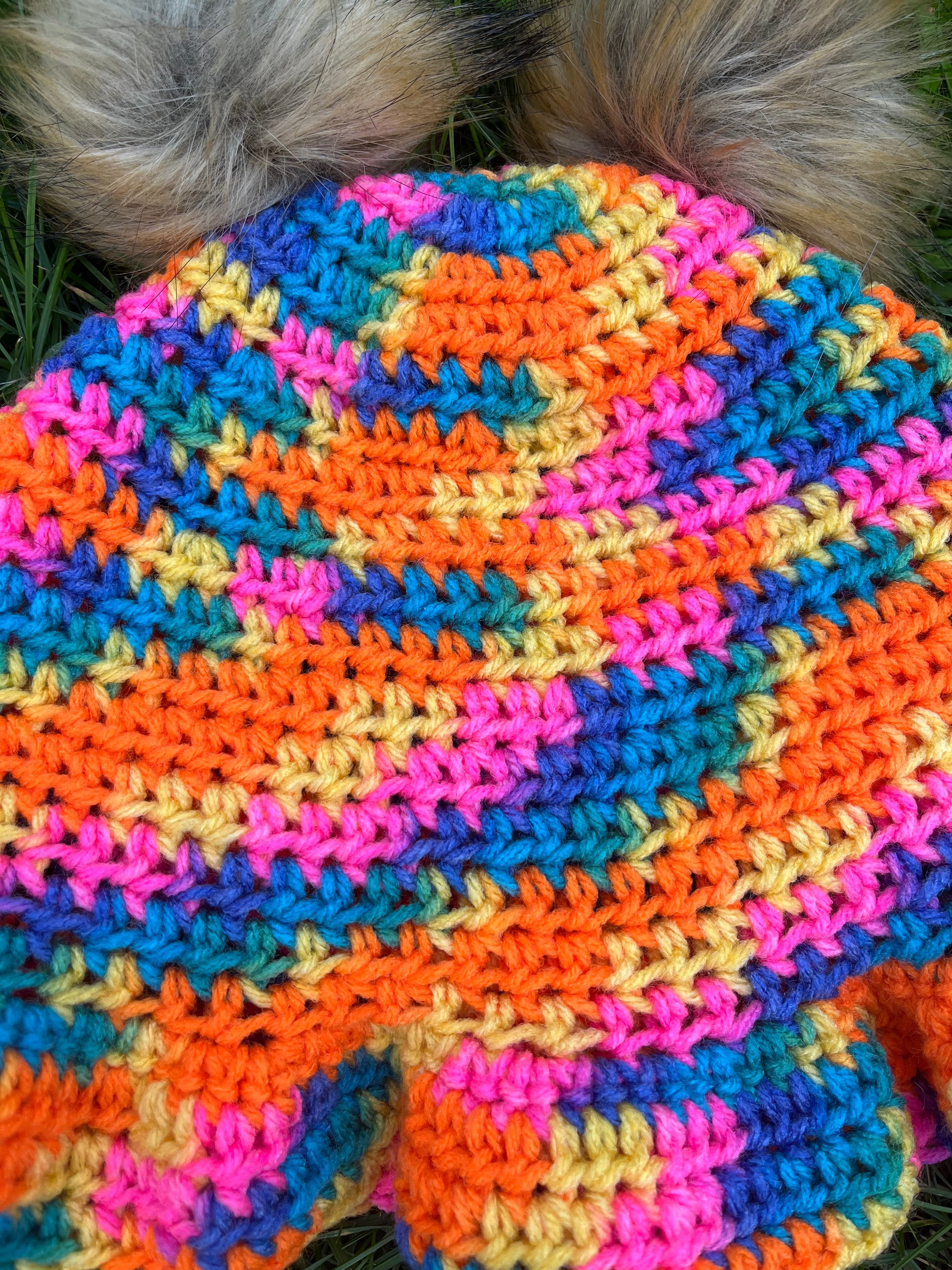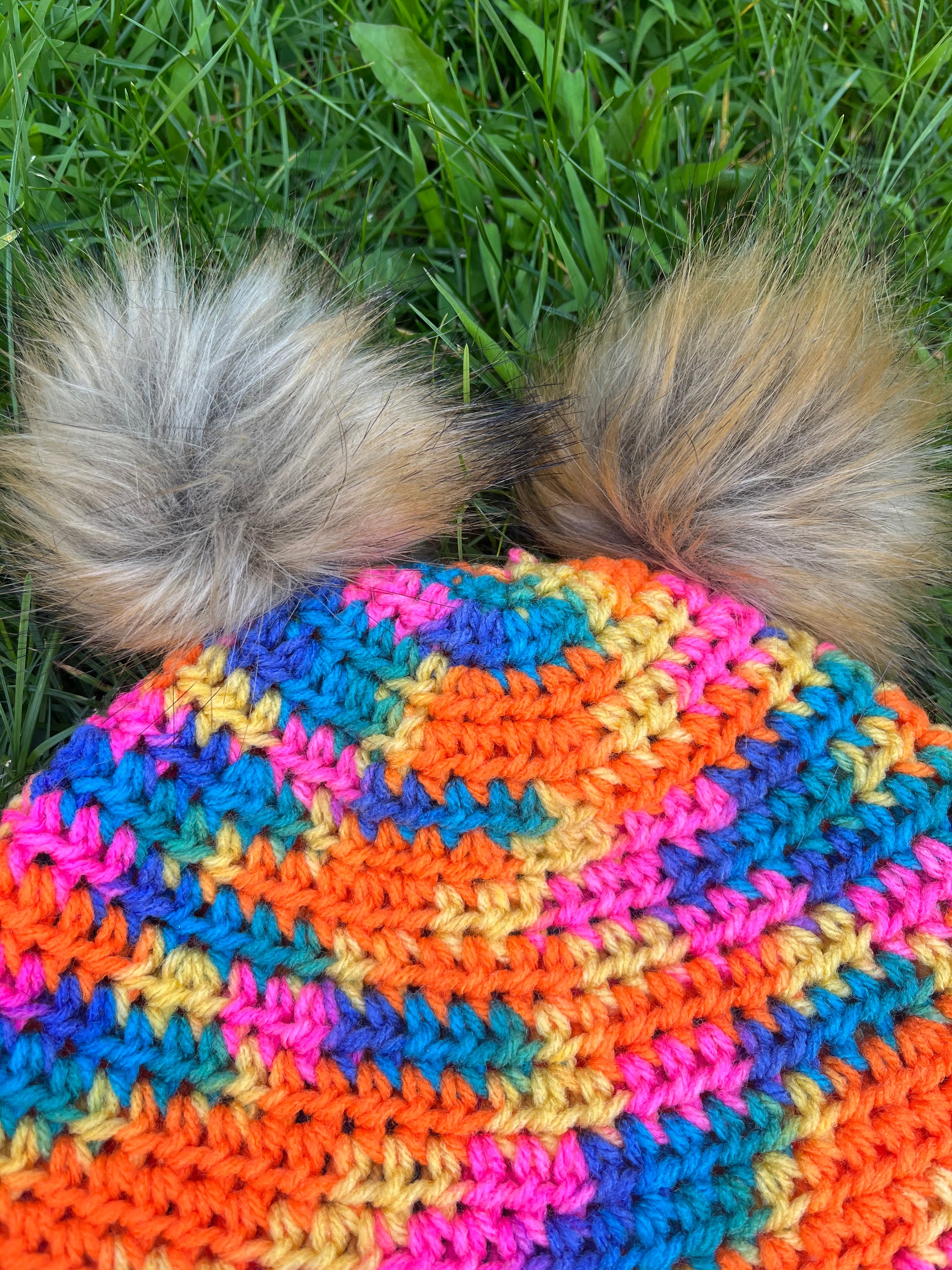 Made with acrylic yarn and soft faux fur Pom Poms this yarn is ONE OF A KIND, the yarn has been discontinued!