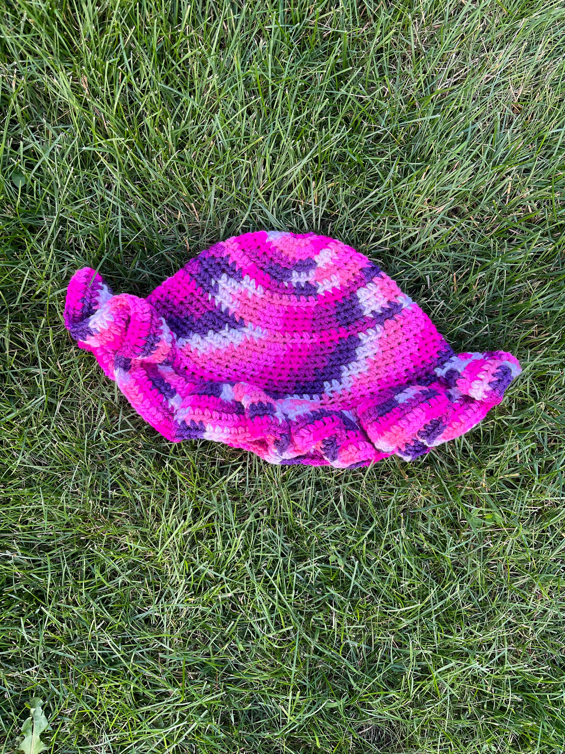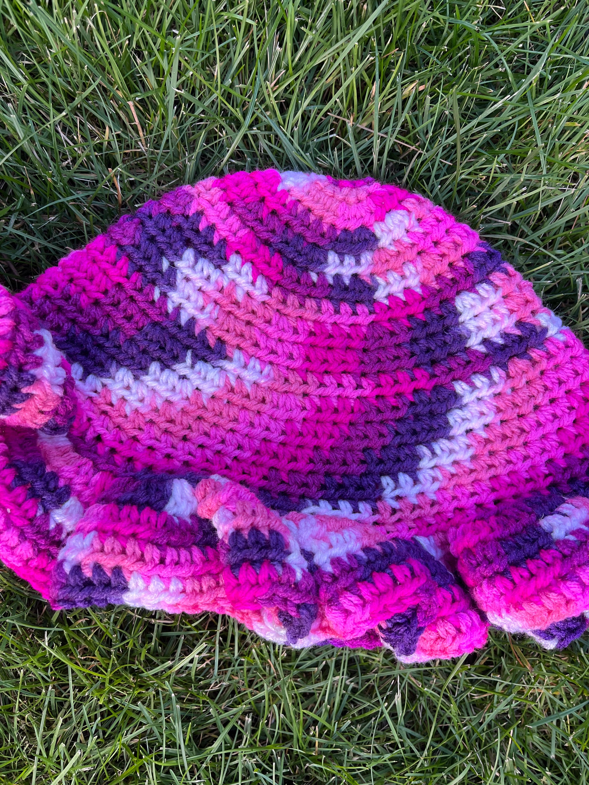 made with acrylic yarn, yarn is discounted, this hat is one of a kind!