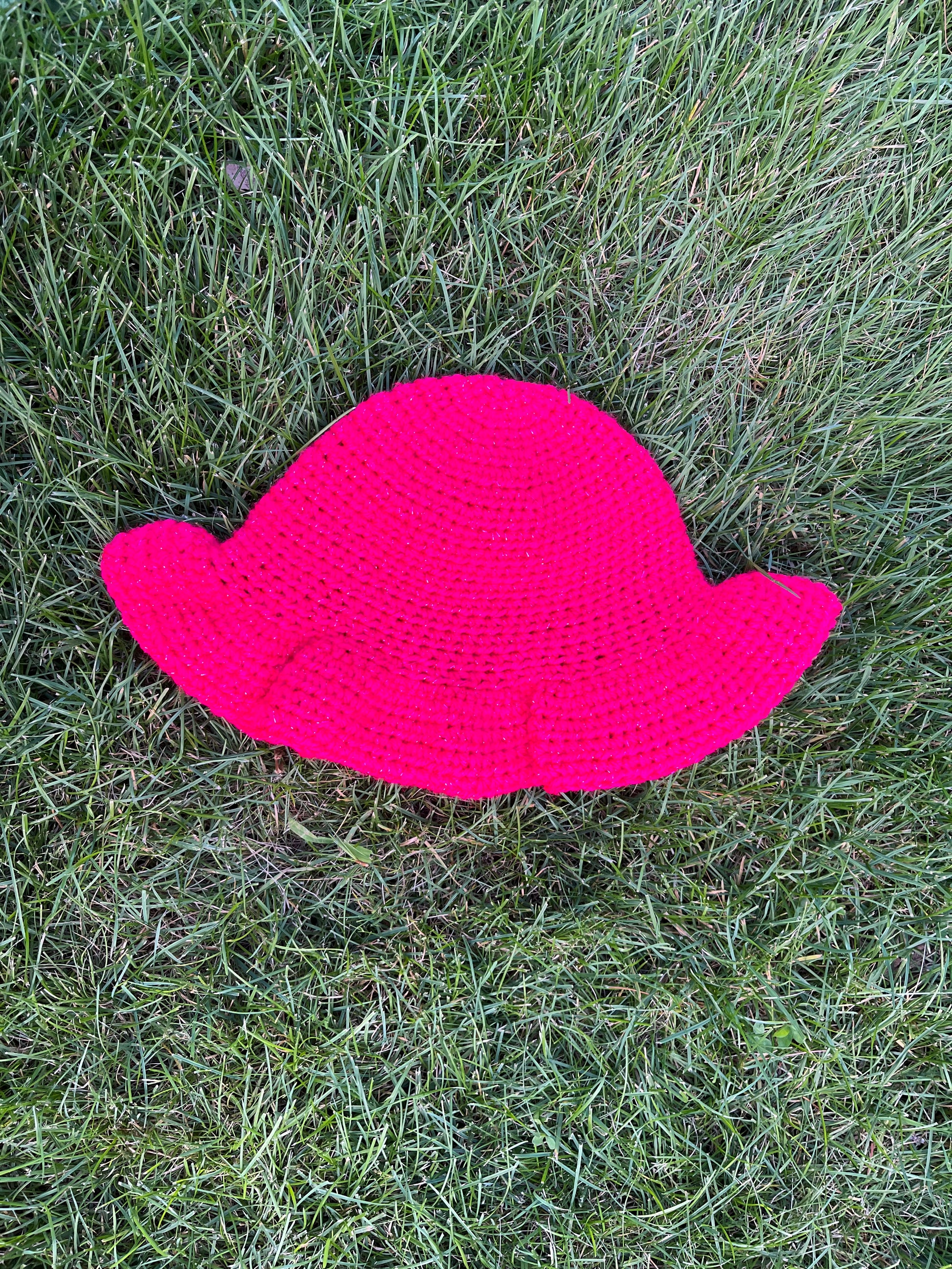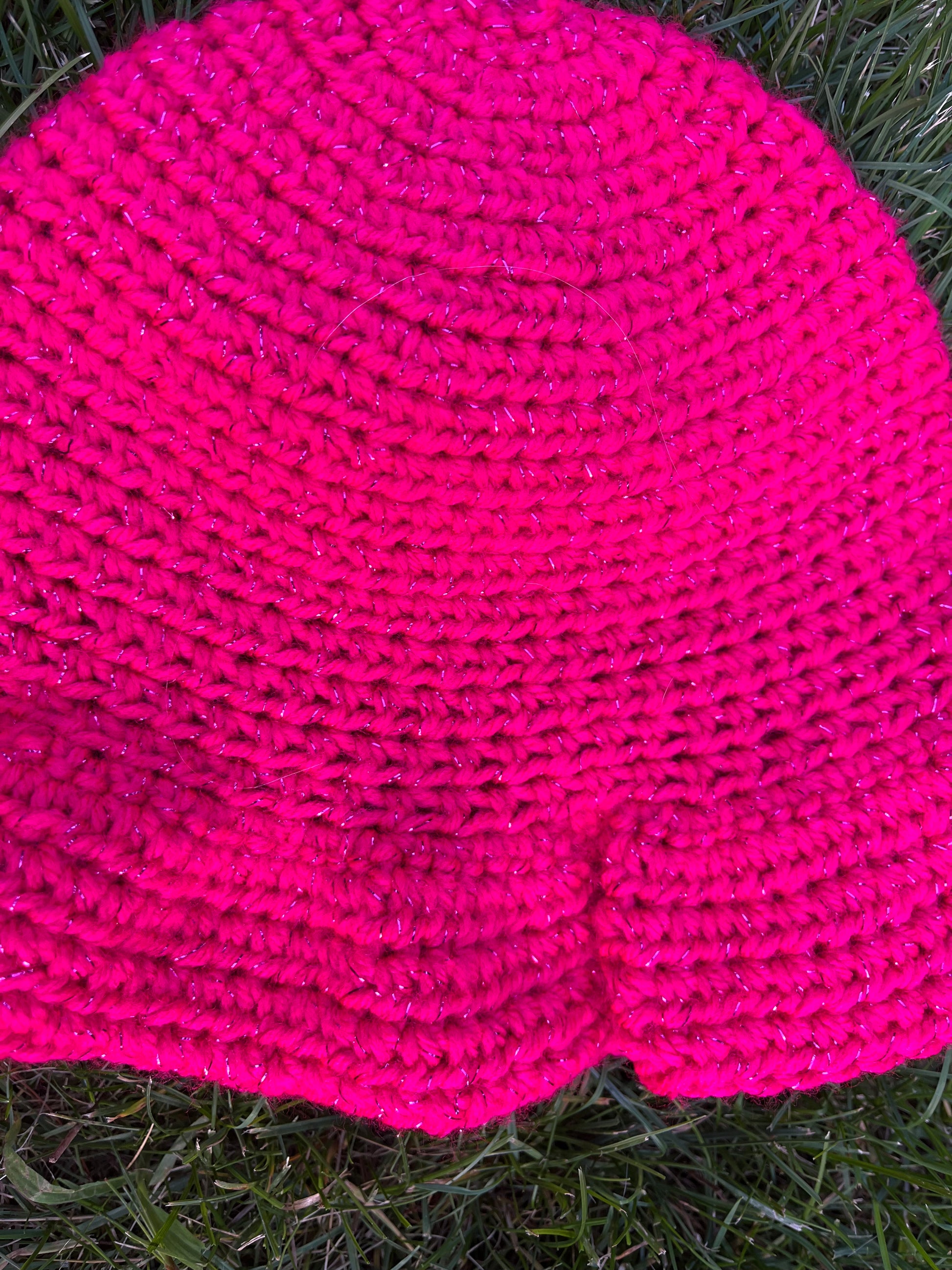 Crochet bucket hat made with soft acrylic yarn with tinsel sparkles