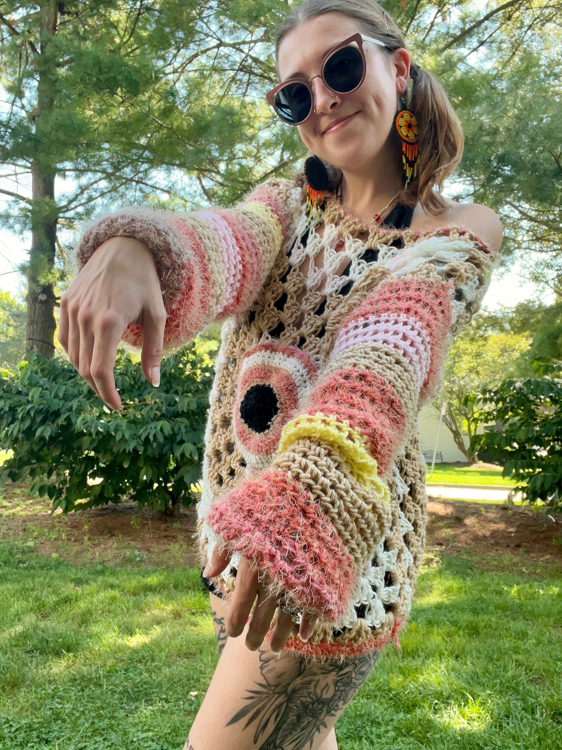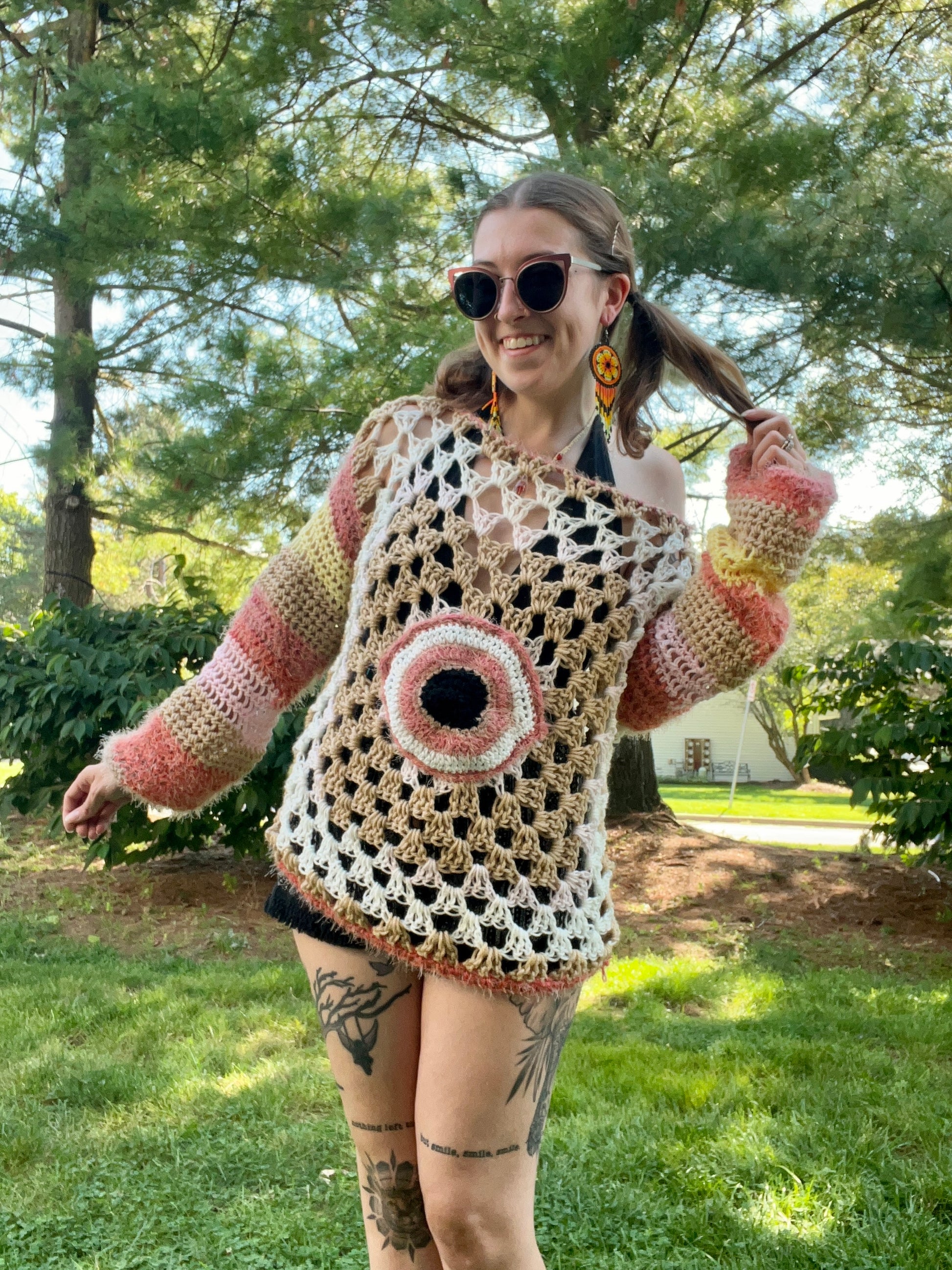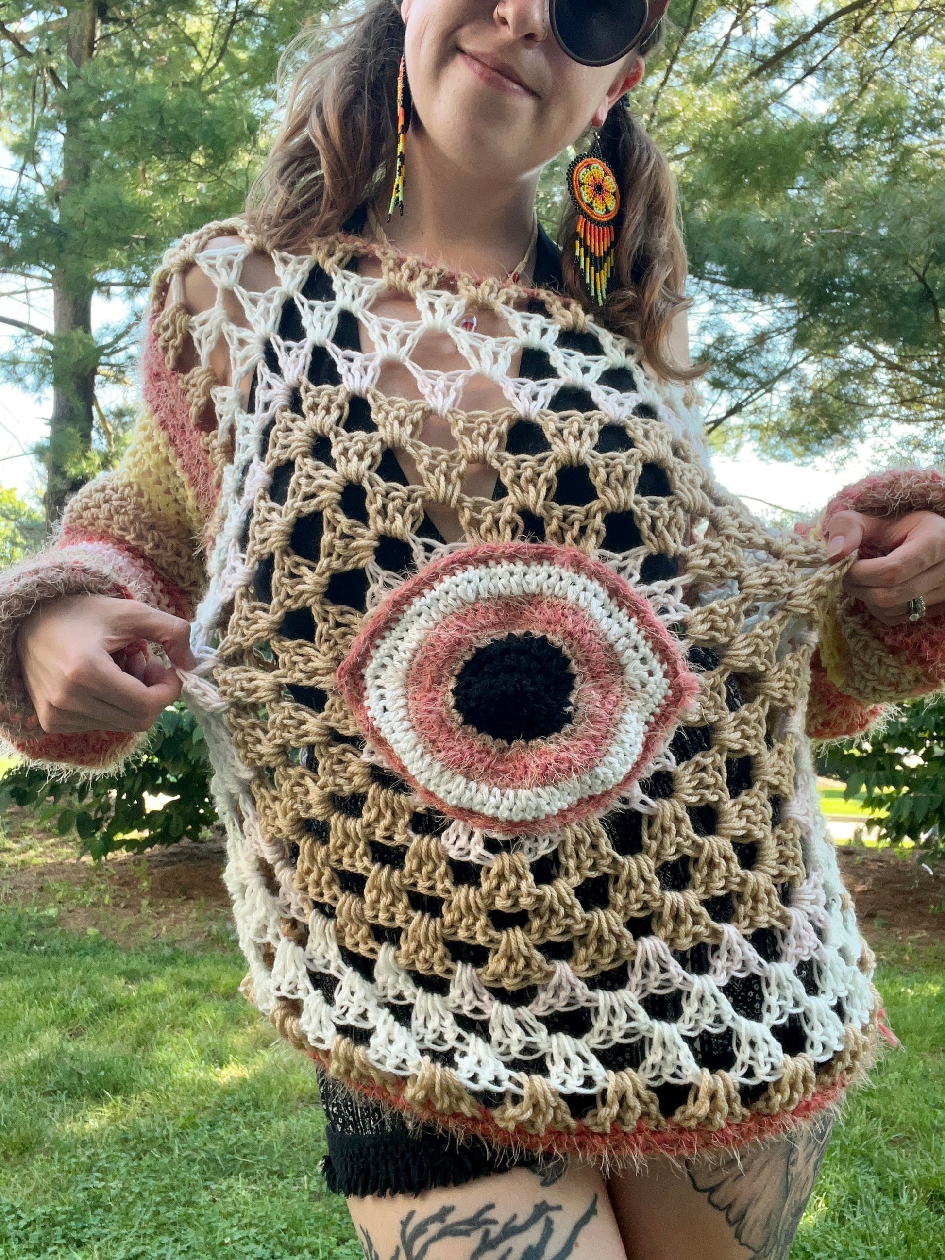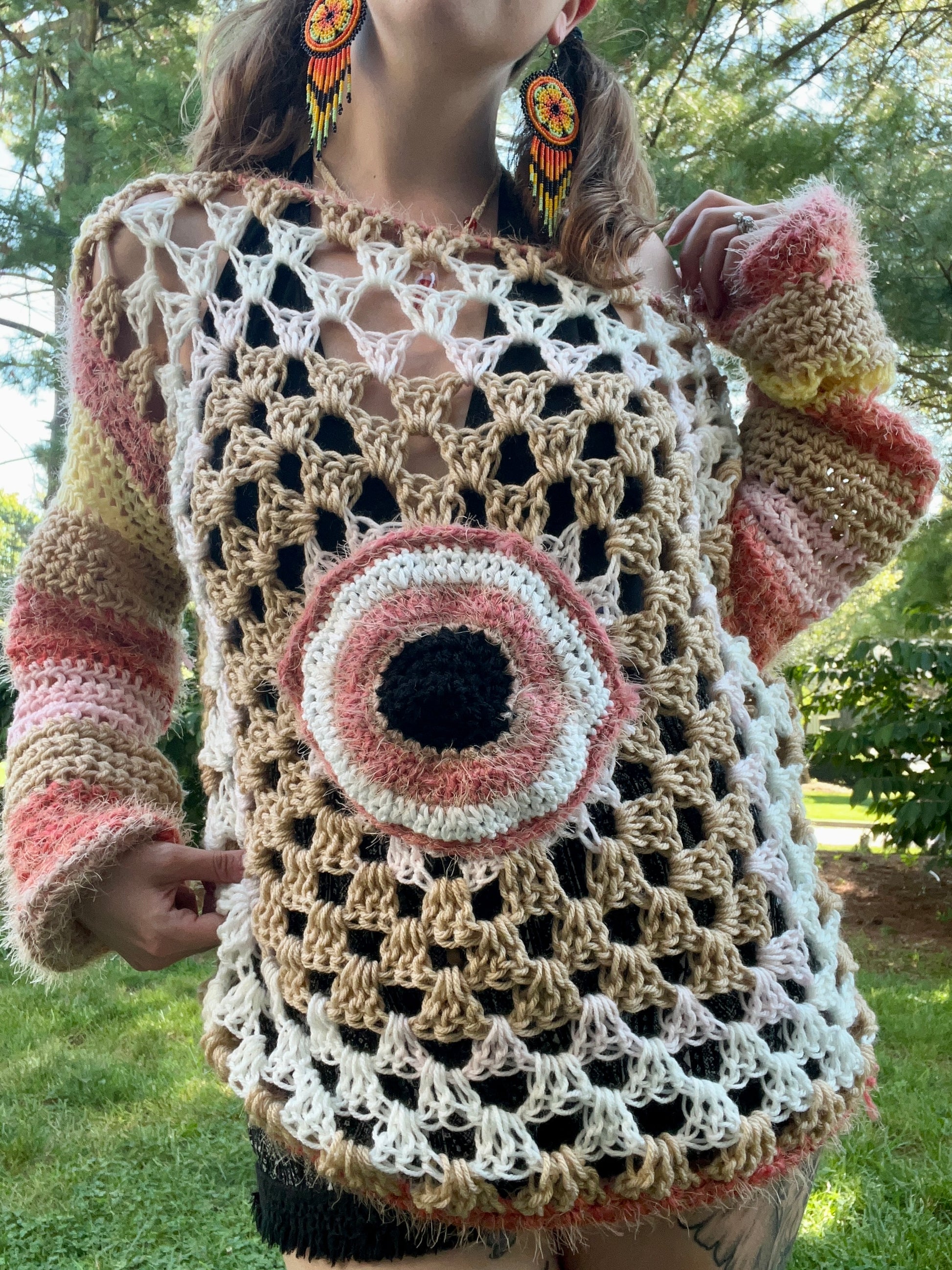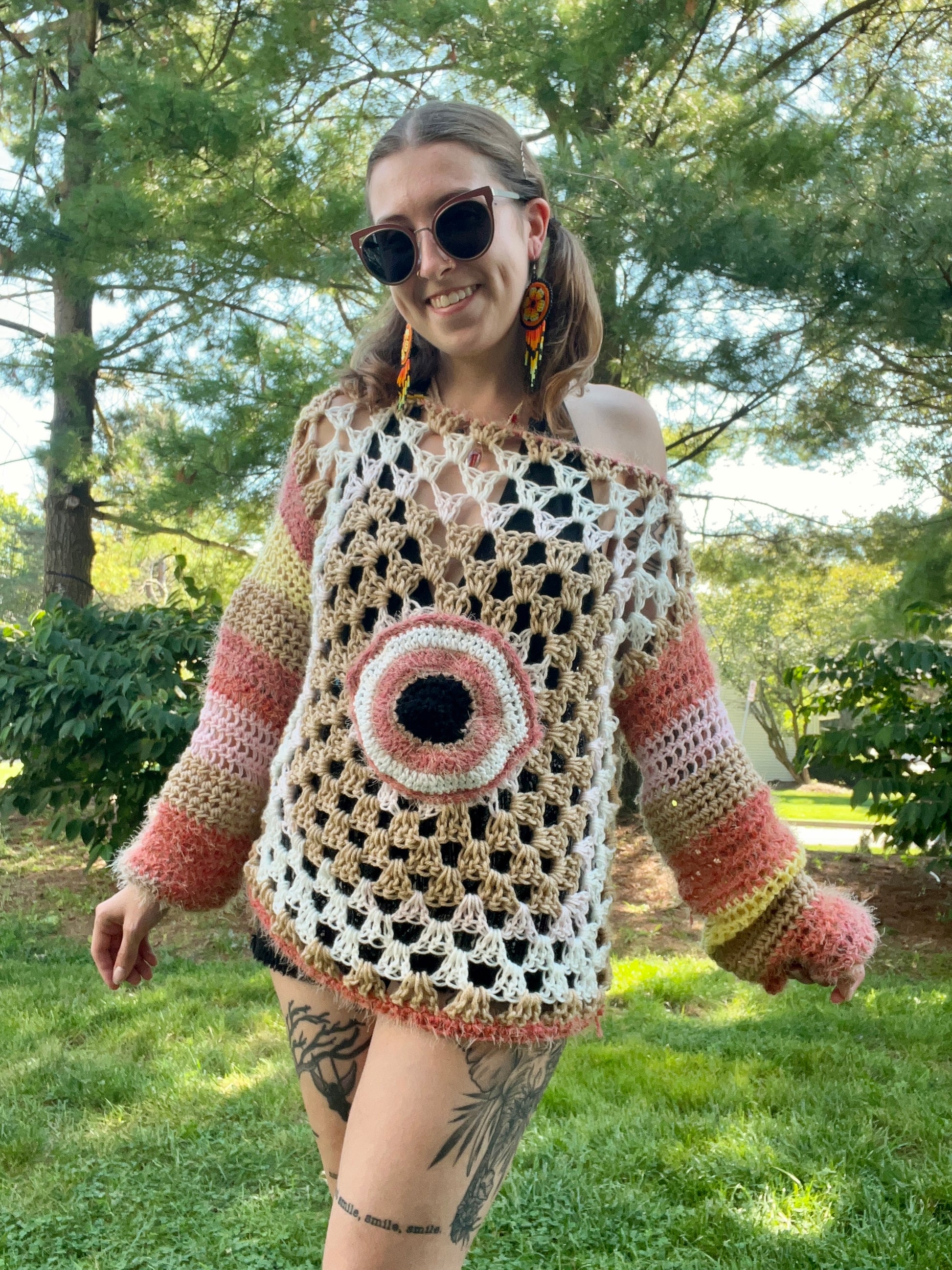 Scrappy Textured Evil Eye Pullover sizes XS-L