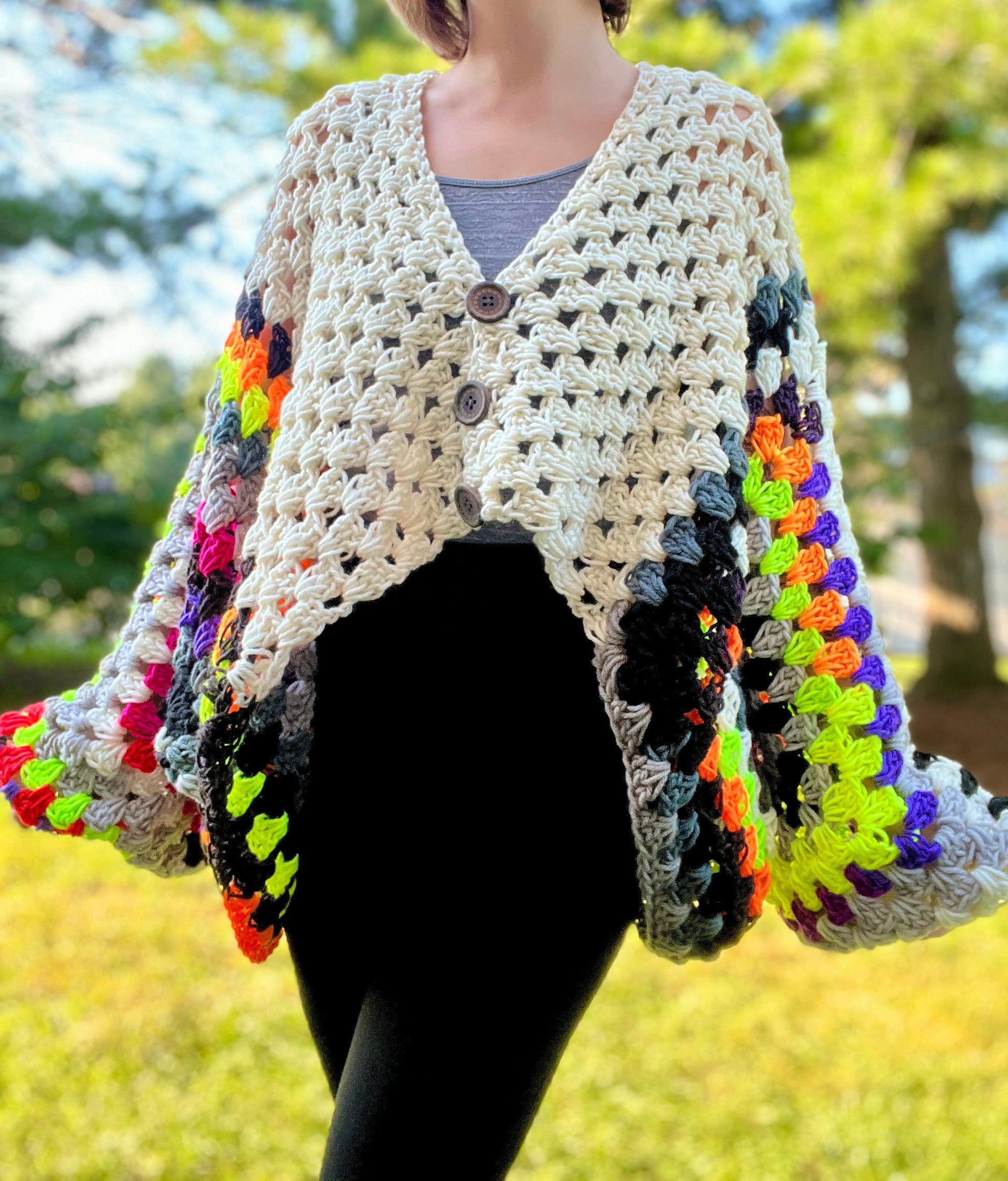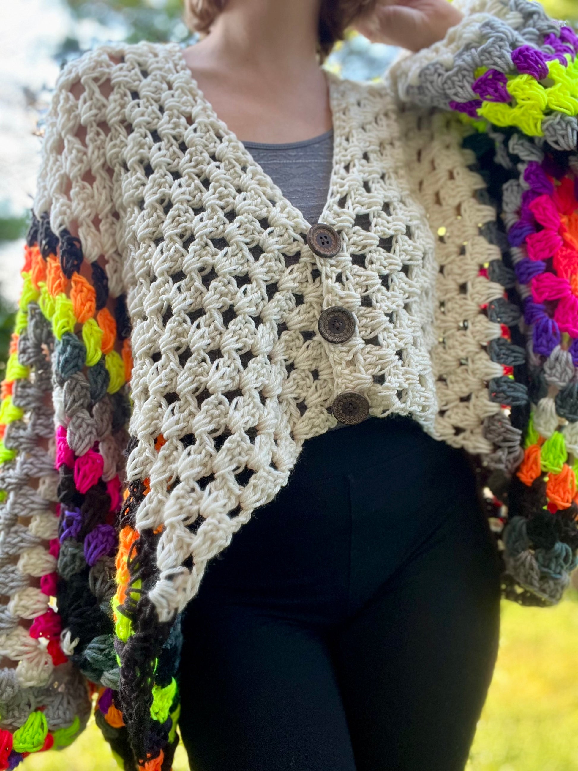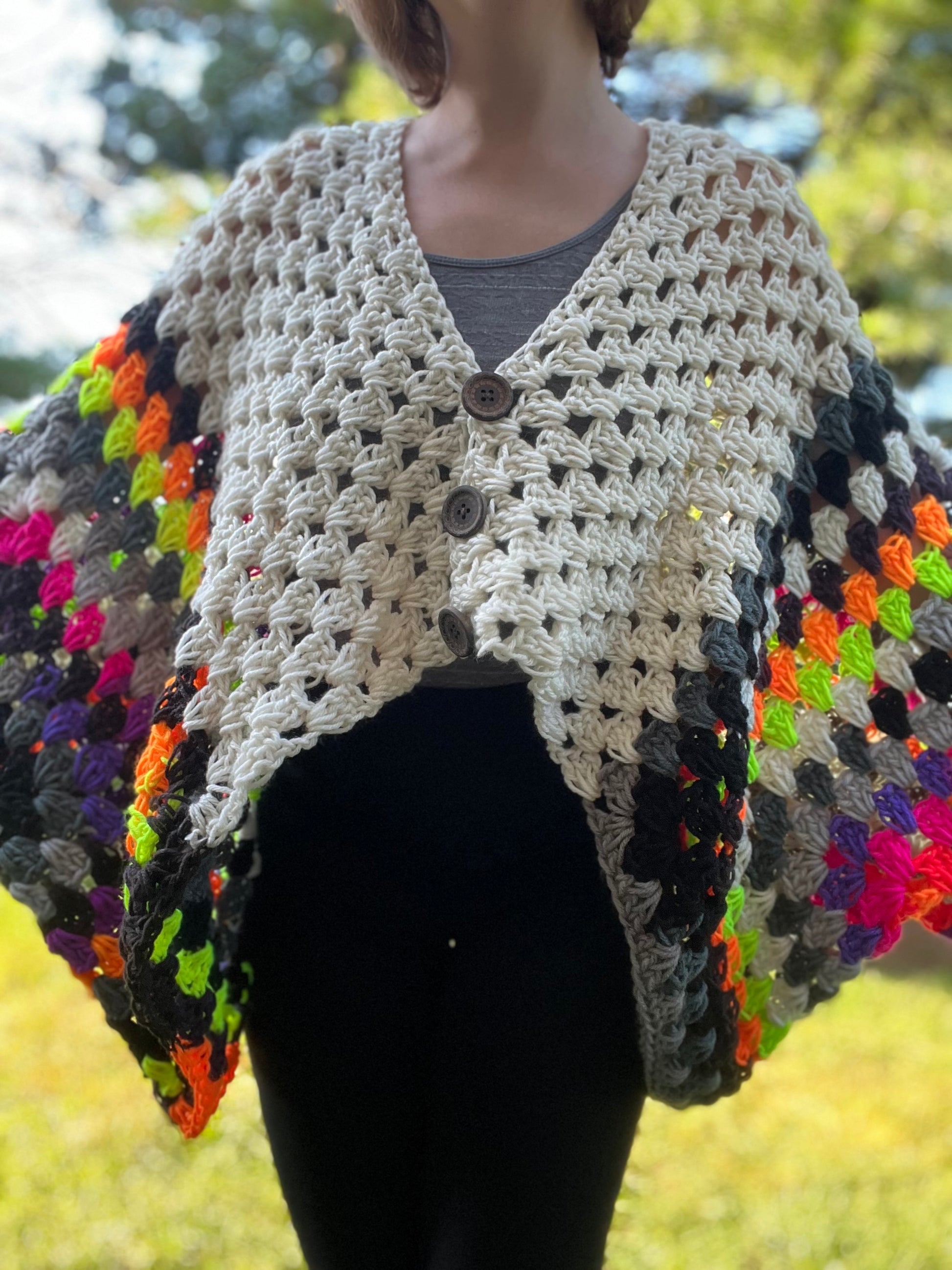 Handmade with acrylic yarn adorned with mandala wooden buttons