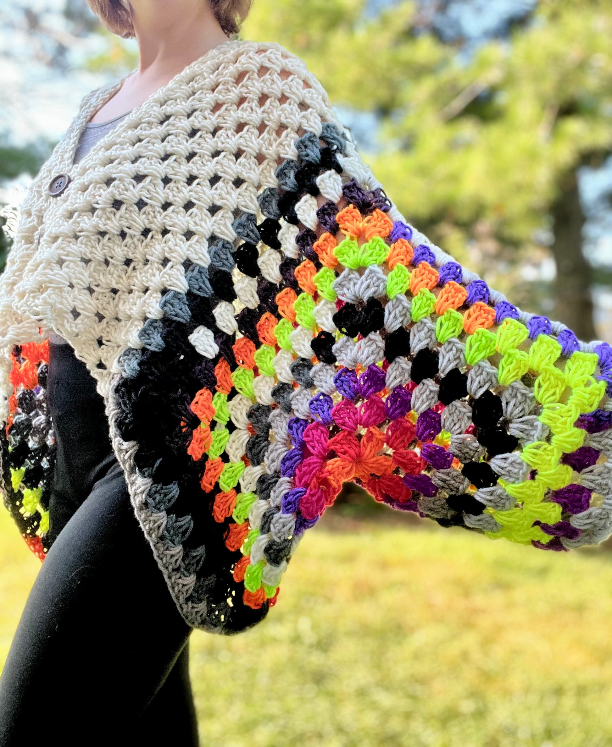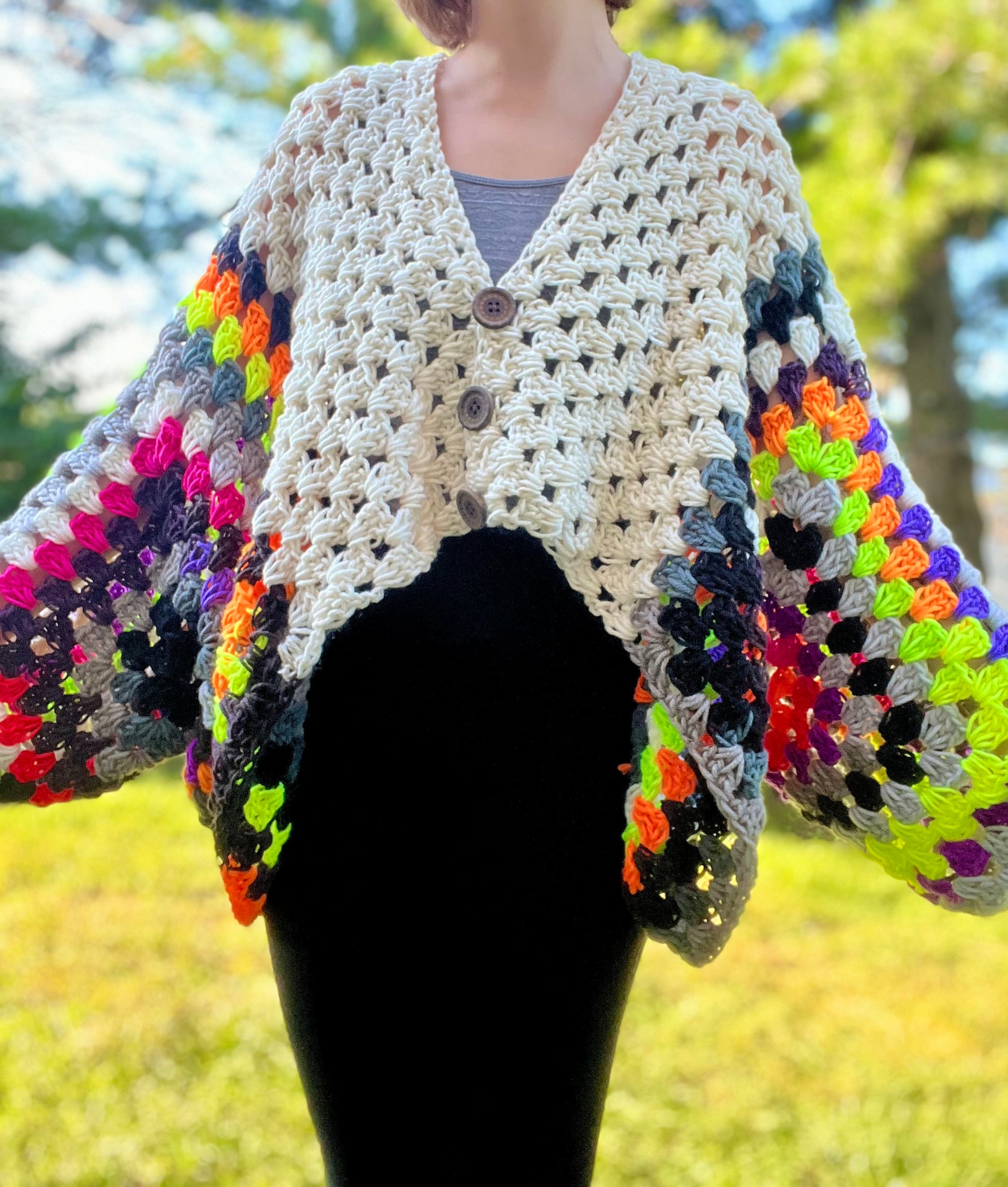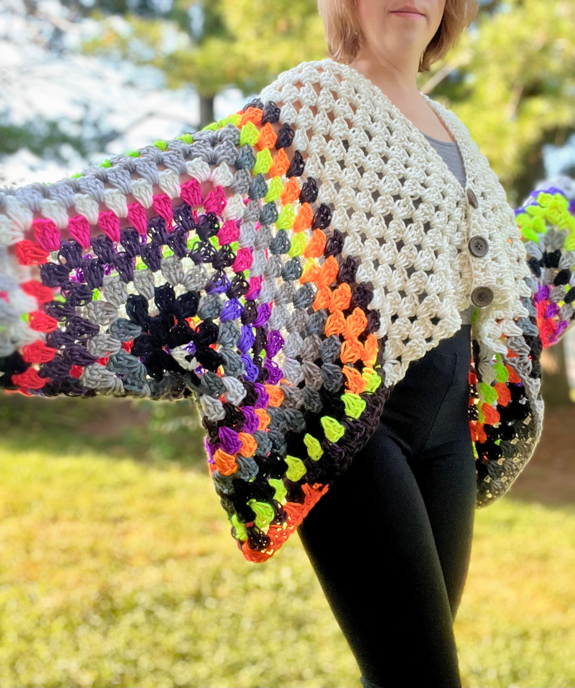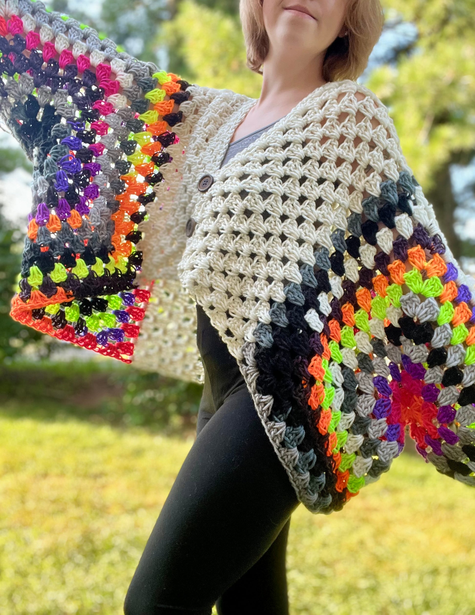 Handmade with acrylic yarn adorned with mandala wooden buttons