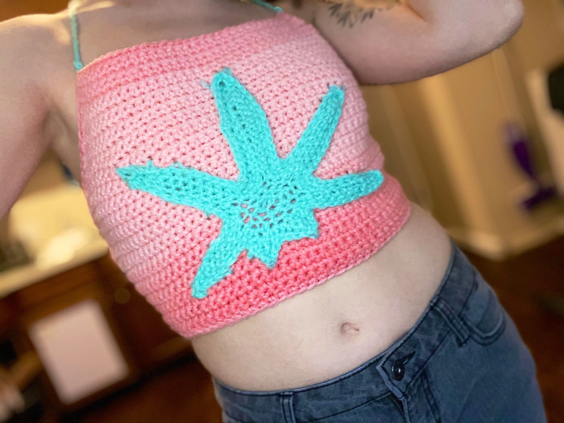 Sherbet Sunrise Ombré Weed Leaf Crochet Crop Top